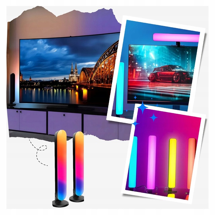 2x LISTWY ŚWIETLNE KOLUMNY INTELIGENTNE DO TV PC LAMPKA LED NA BIURKO RGB GAMINGOWA