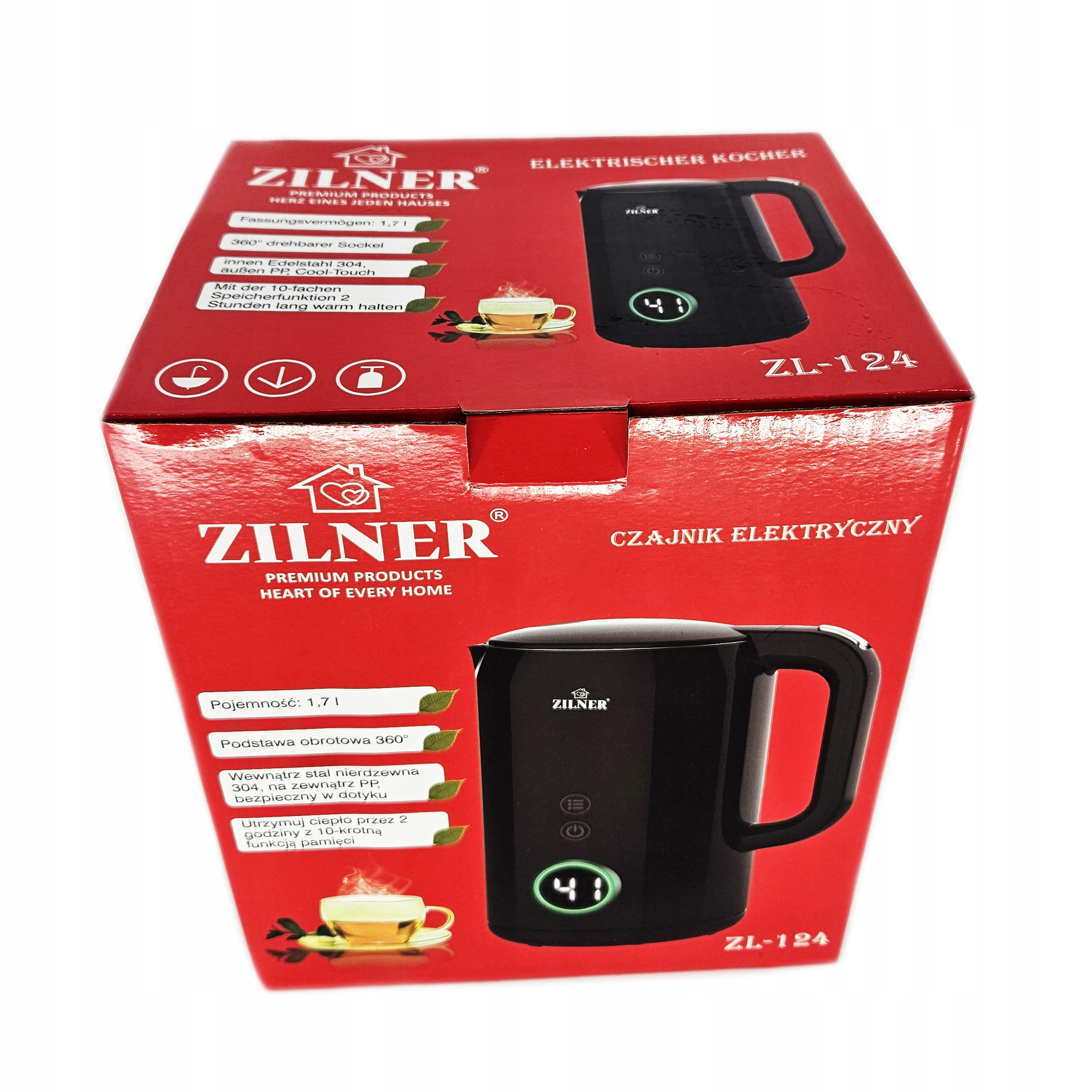 - Duża pojemność czajnika, aż 1,7 L pozwala zagotować.