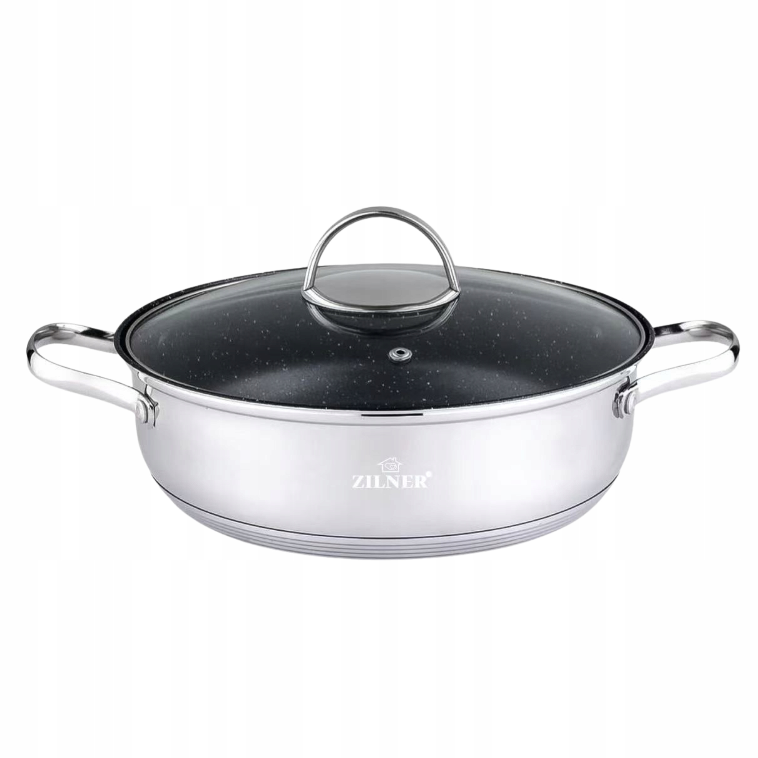 Garnek Niski Indukcja Gaz 24cm 3.8l Pokrywka Antypowłoka Stal Nierdzewna