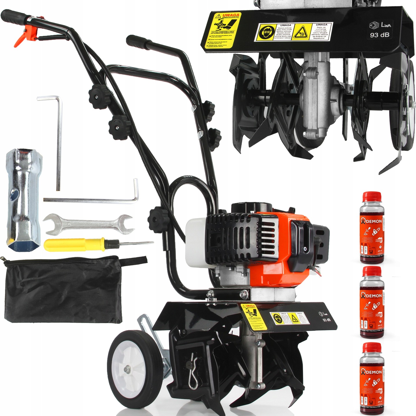 Za moc glebogryzarki odpowiada legendarny wręcz dwusuwowy silnik DEMON 3,5KM o pojemności 63cm³ osiągający 2,6kW mocy.