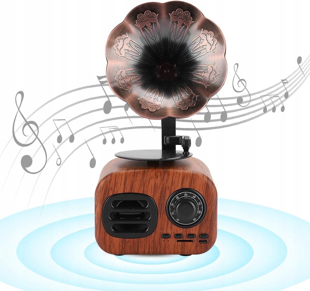 Gramofon Retro Bluetooth Radio Sd Usb Głośnik Bezprzewodowy 1200mah