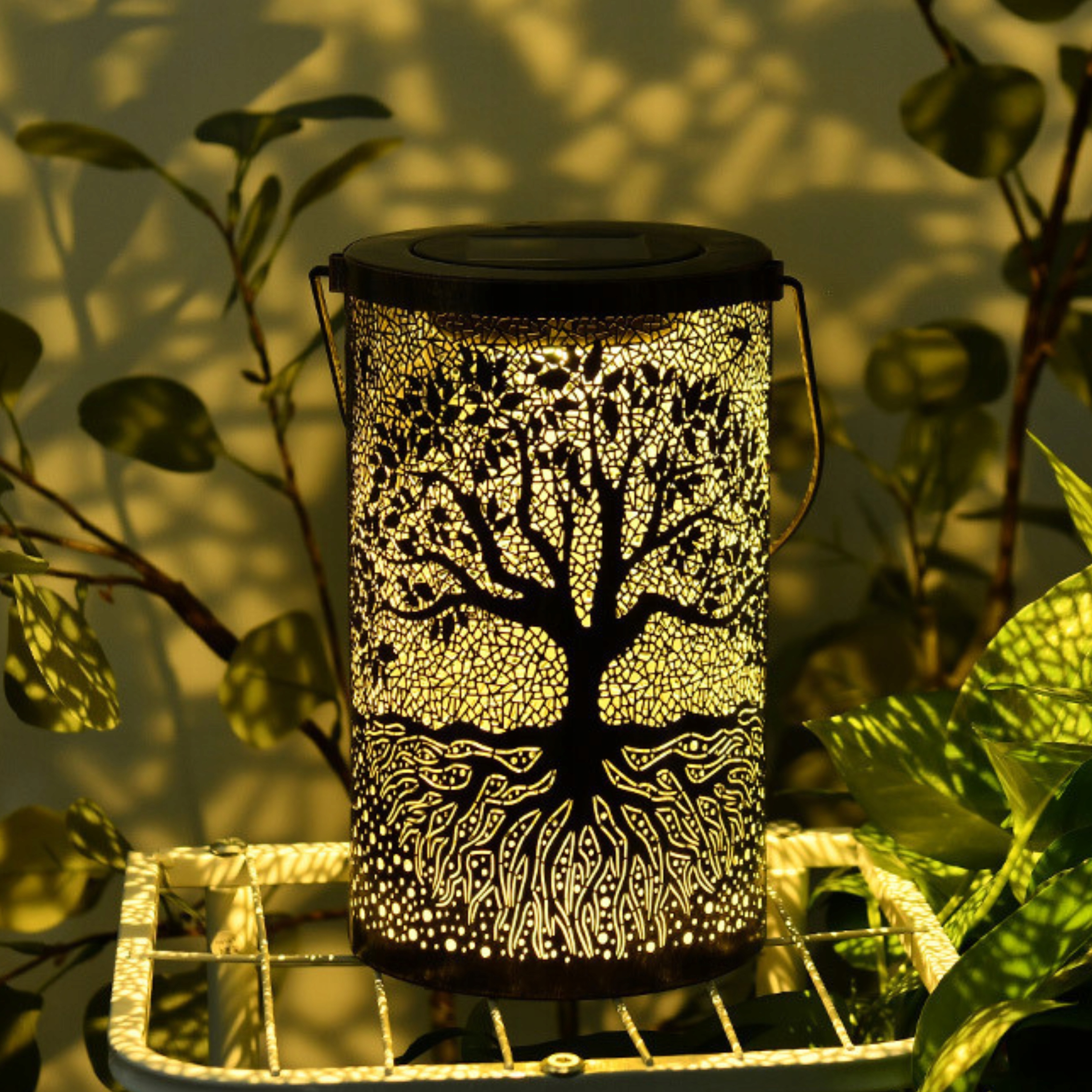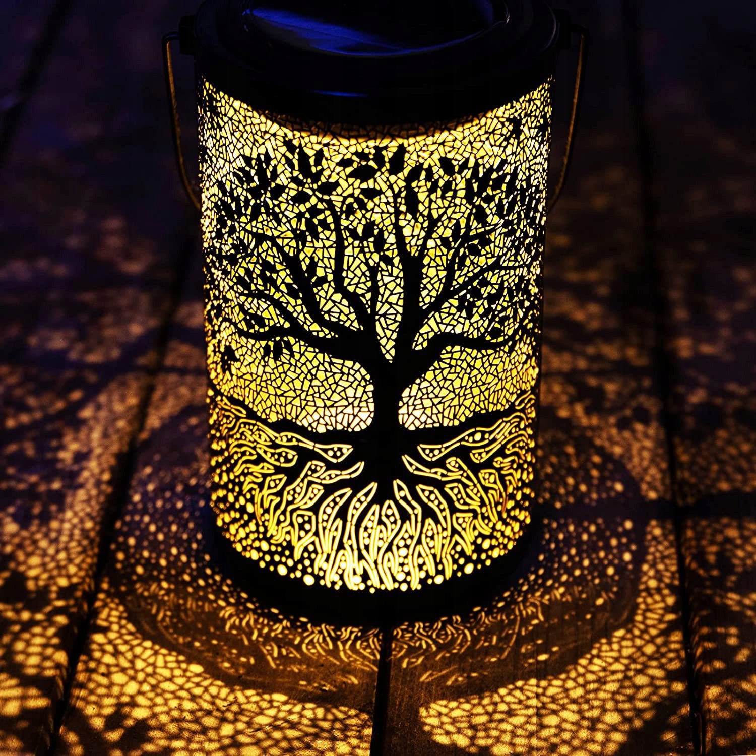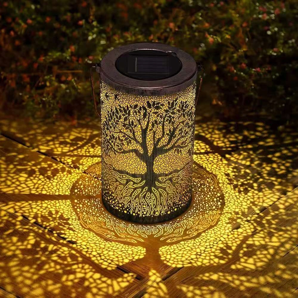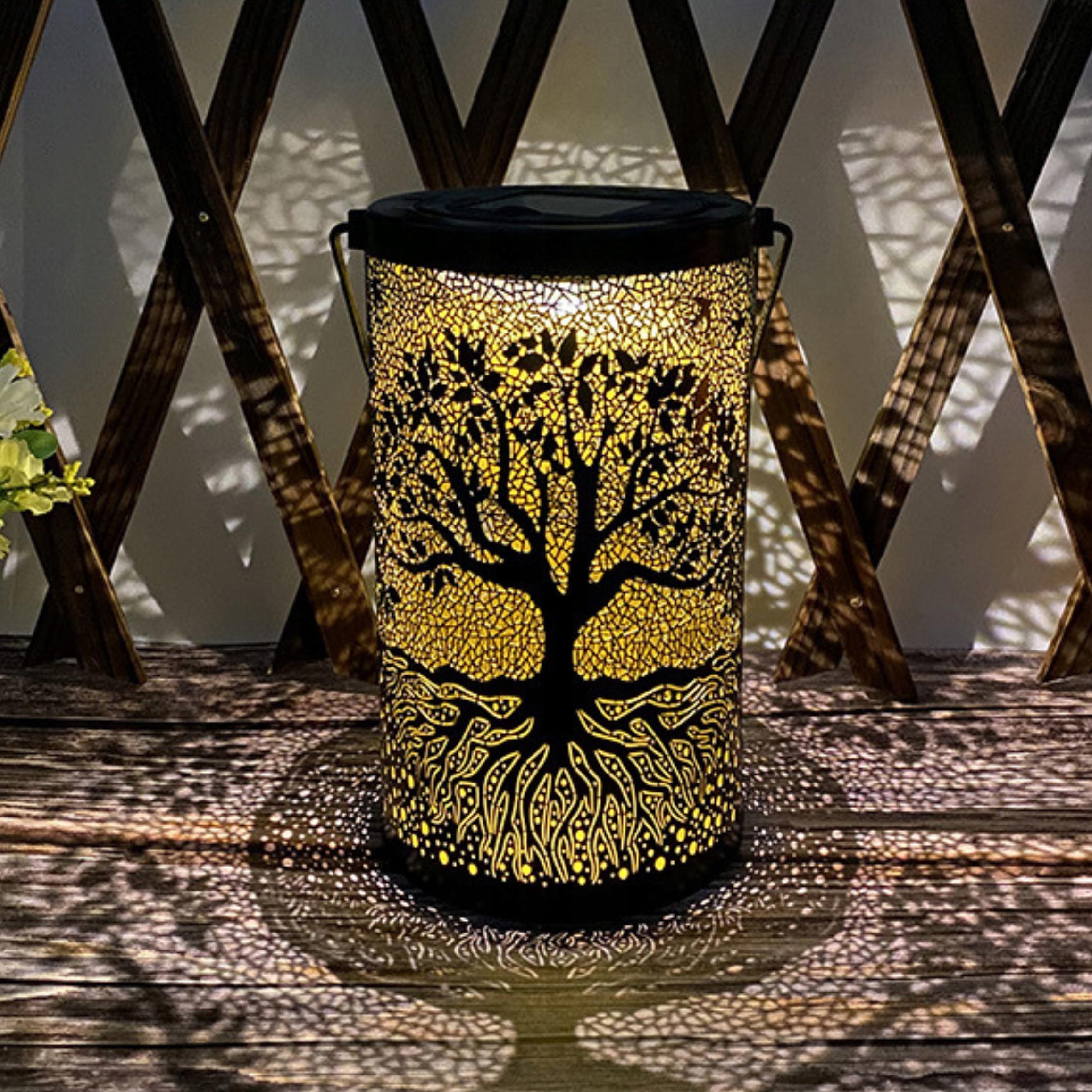 Dekoracyjna lampa solarna LED z ażurowym wzorem drzewa życia to połączenie stylu, elegancji i ekologicznej funkcjonalności. Po zmroku rzuca zachwycający, artystyczny cień na otoczenie, tworząc magiczną atmosferę.