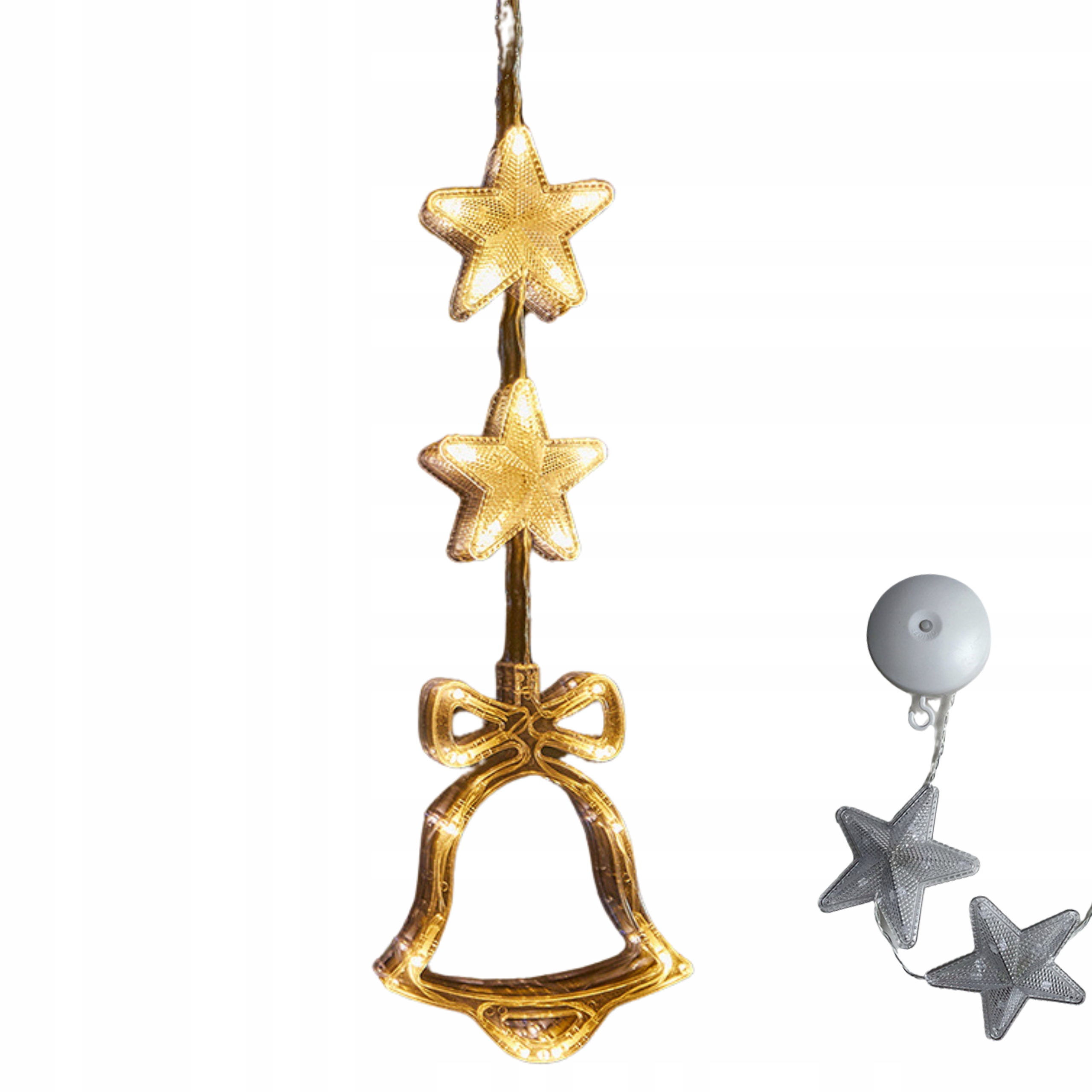 - Ozdoba wyposażona jest w przyssawkę, która umożliwia łatwe i stabilne przytwierdzenie jej do szyby, co sprawia, że jest idealna do okien. Głównym elementem dekoracji jest duża śnieżynka, która świeci ciepłym, przyjemnym światłem. Dodatkowo, nad śnieżynką znajdują się dwie świecące gwiazdki, co dodaje dekoracji jeszcze więcej uroku i świątecznego klimatu.
