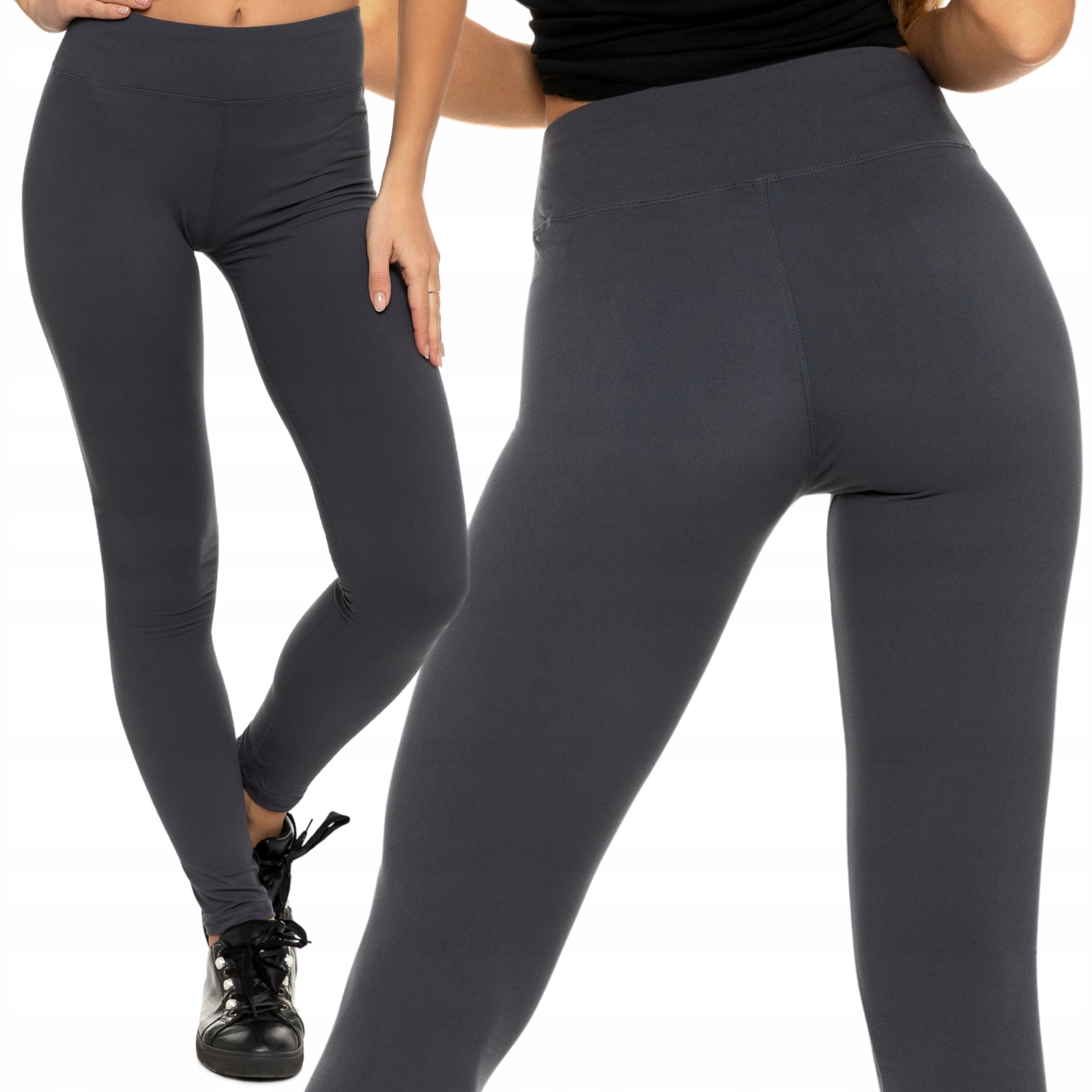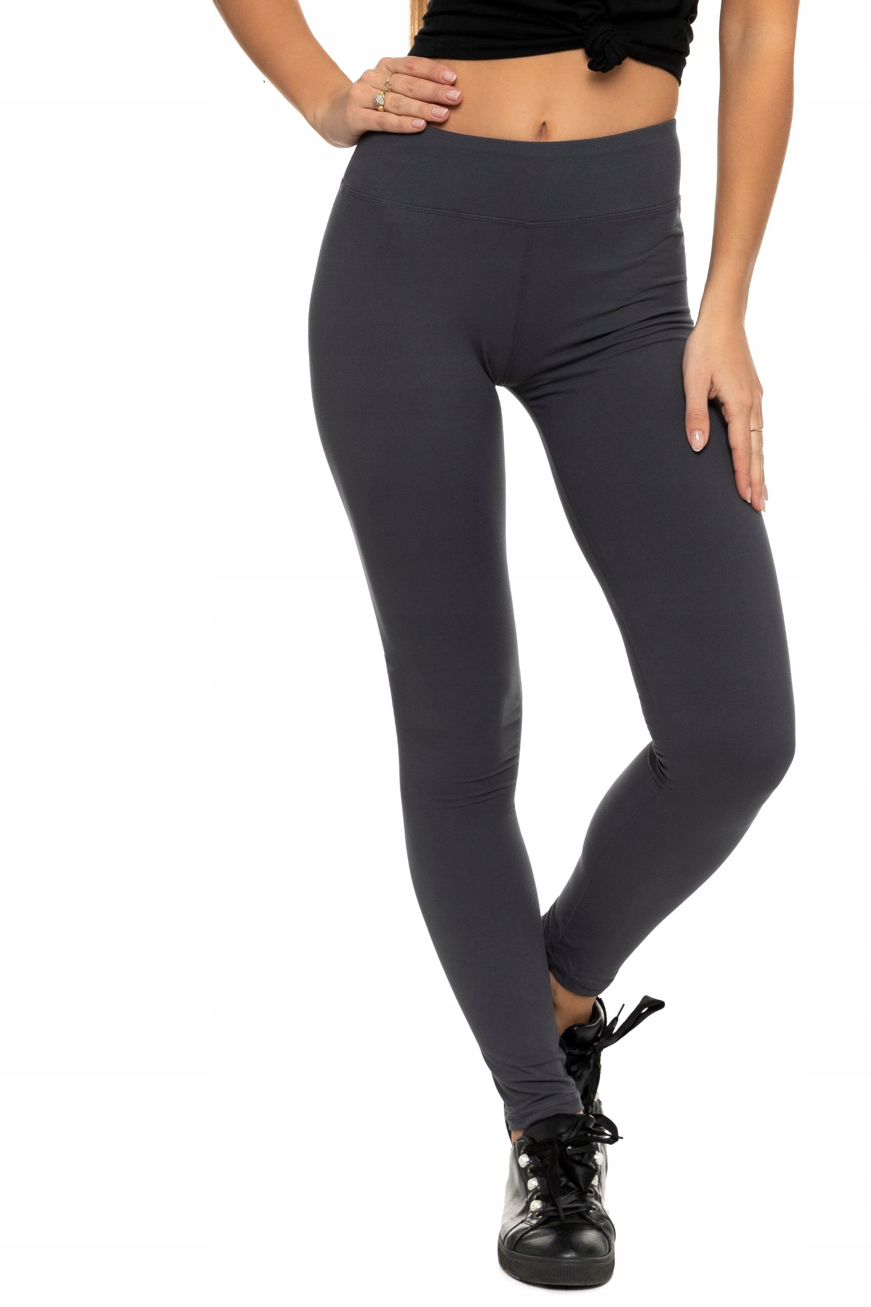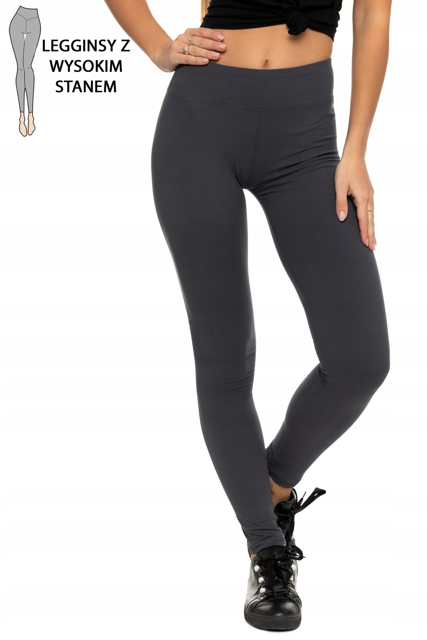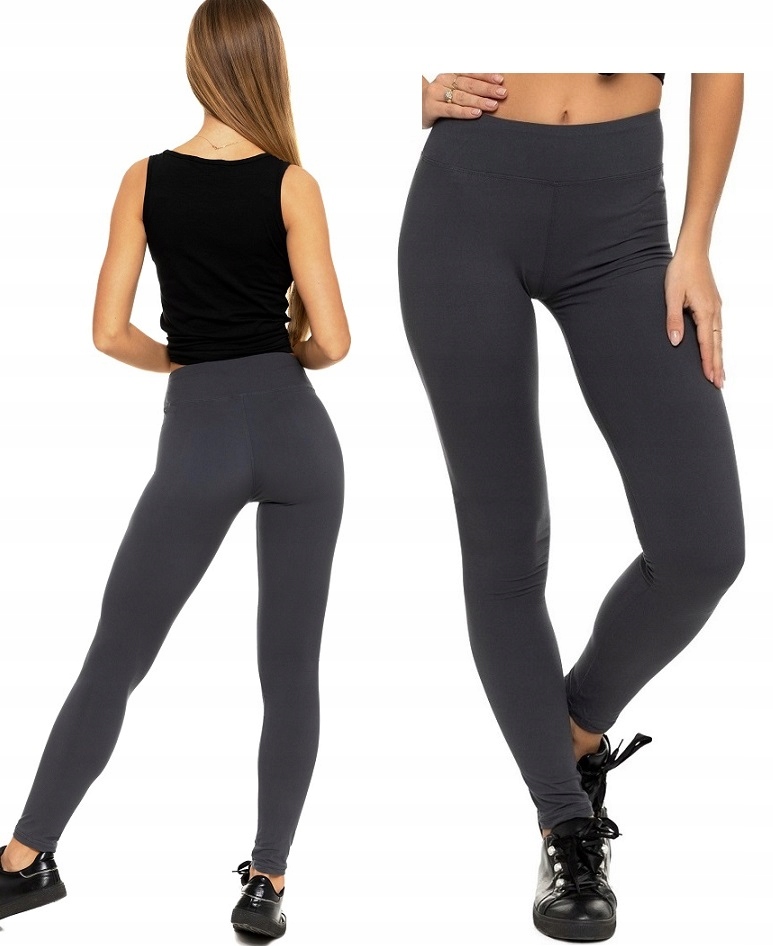 Legginsy Damskie Moraj Klasyczne Długie Wysoki Stan Ciemny Szary Mocne