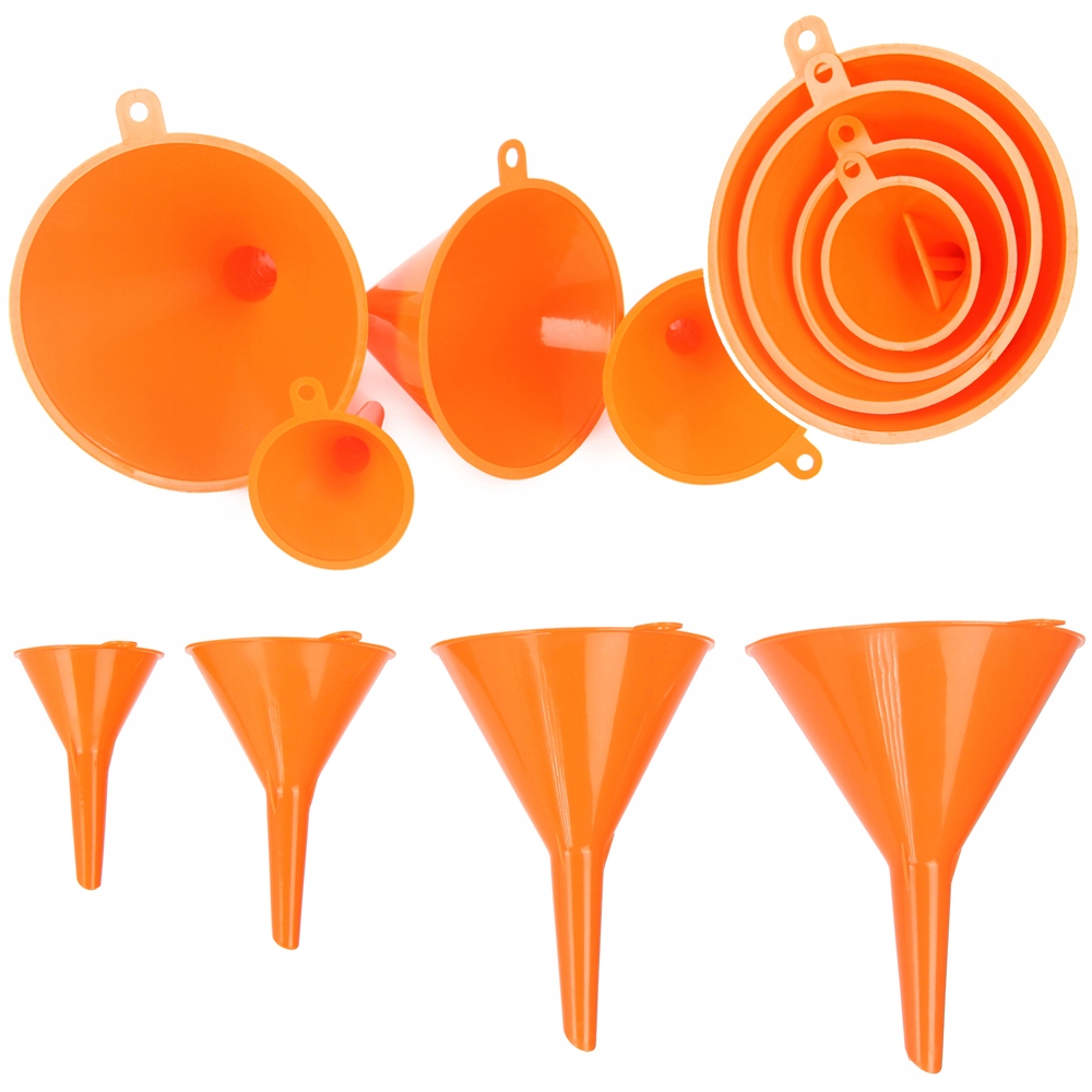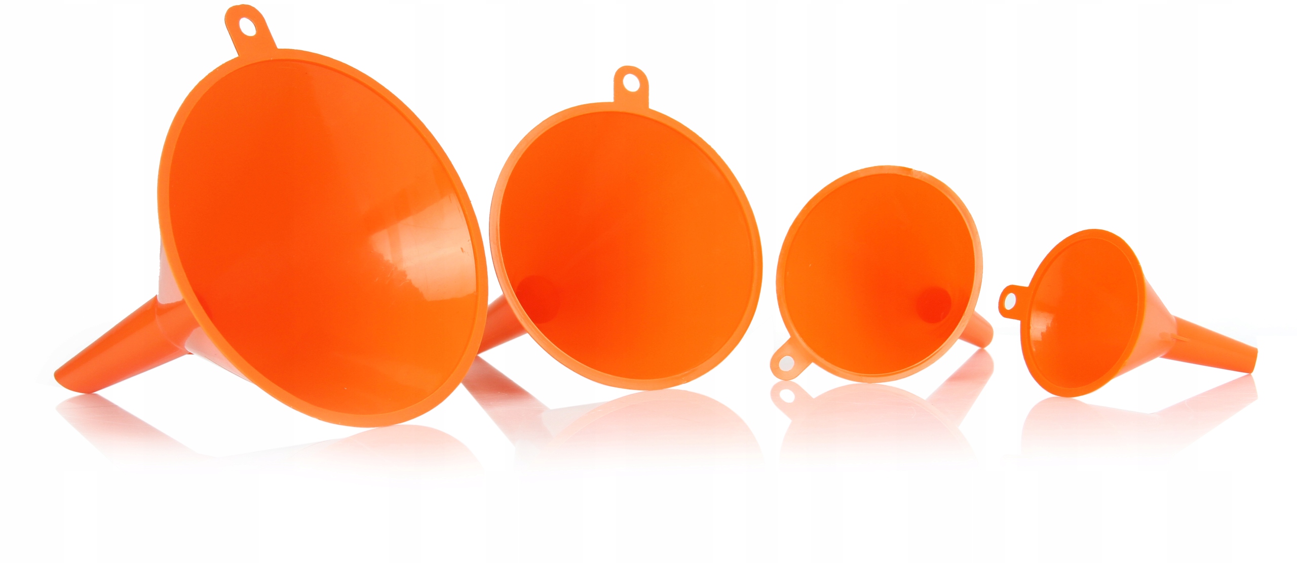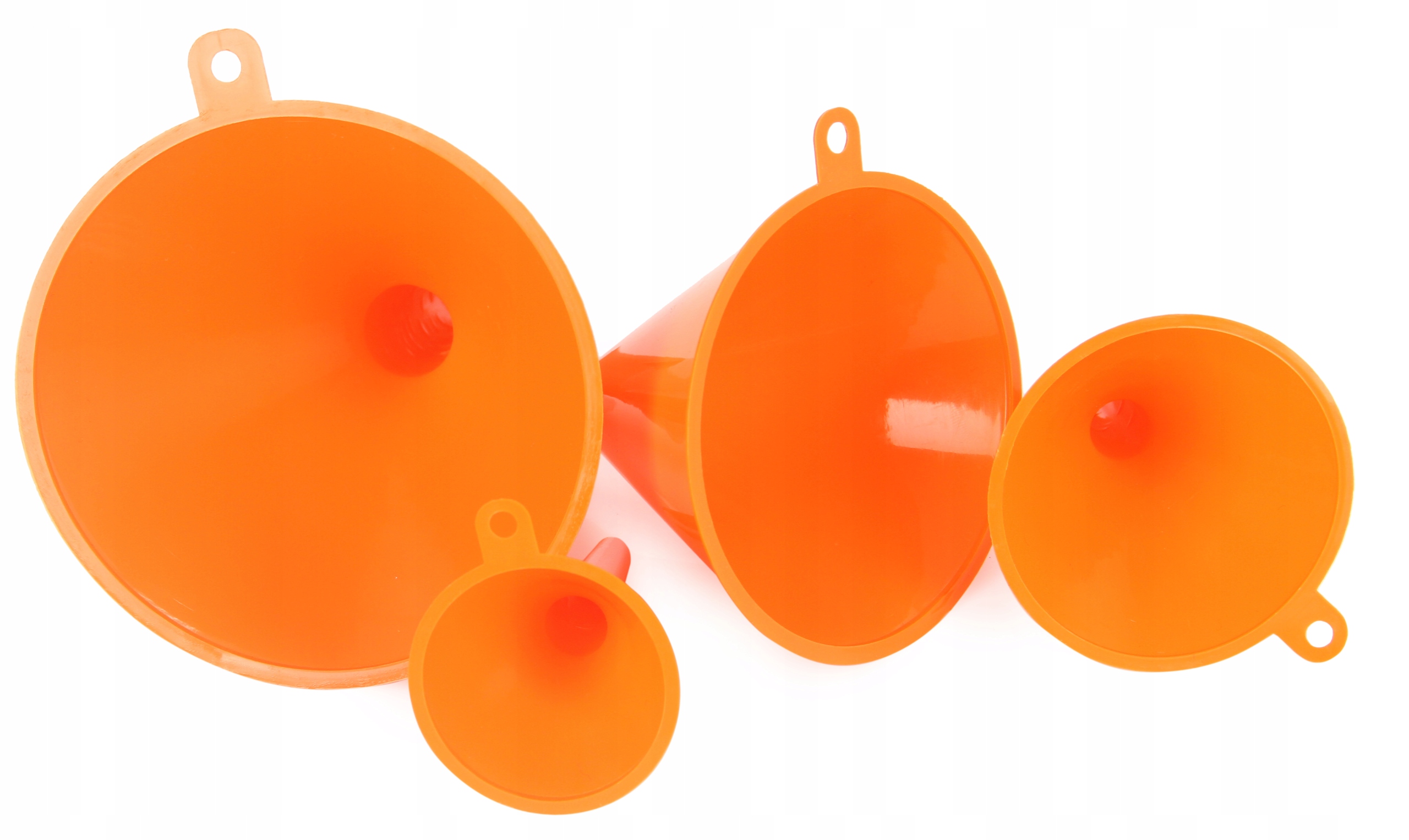 LEJKI PLASTIKOWE ZESTAW 4w1 DO PALIWA OLEJU WODY UNIWERSALNE 4 SZTUKI