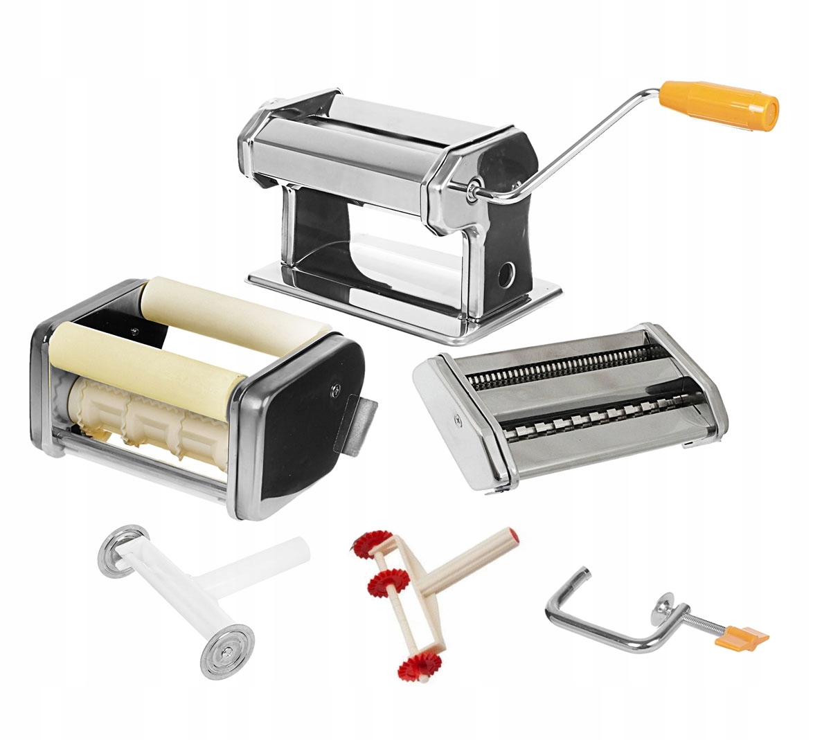 - W komplecie znajduje się WYKROJNIK DO MAKRONÓW oraz MASZYNKA DO PIEROŻKÓW RAVIOLI.