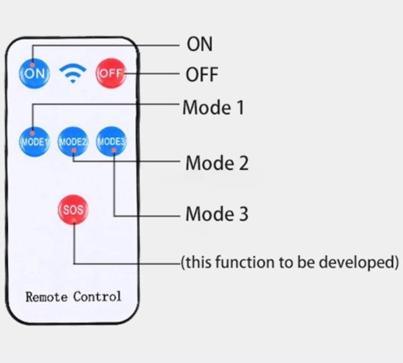 Pilot posiada standardowe funcie dla tego typu urządzeń czyli on/off i wybór trybu pracy. Pilot nie jest dedykowany do konkretnej lampy, więc można obsługiwać kilka reflektorów jednym pilotem.