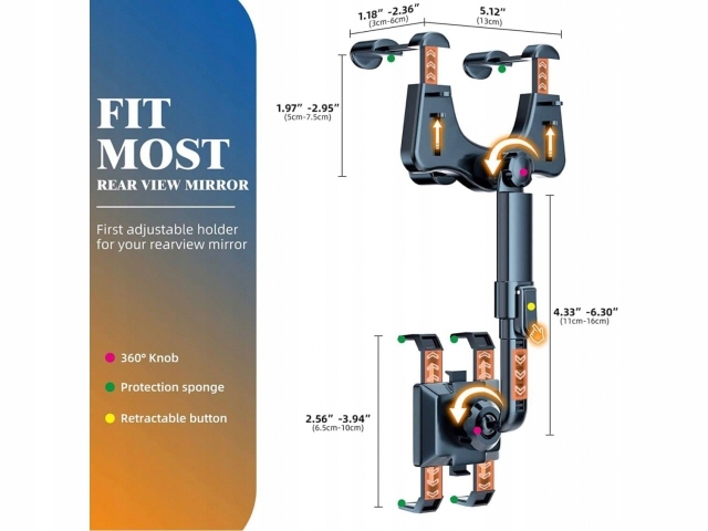 MOCNY UCHWYT DO TELEFONU NA LUSTERKO WSTECZNE