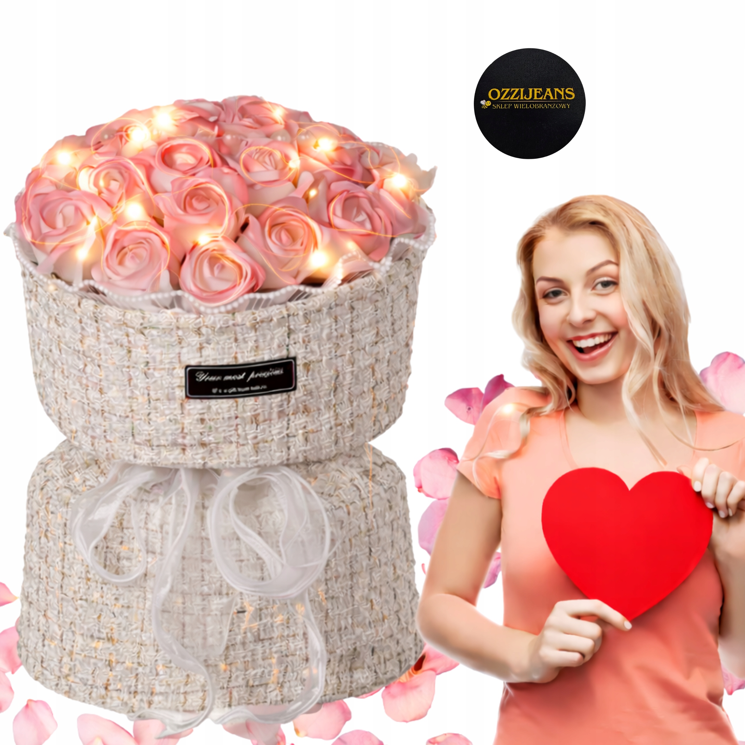 MYDLANE RÓŻE RÓŻOWE LED ZESTAW NA WALENTYNKI DZIEŃ KOBIET PREZENT URODZINY
