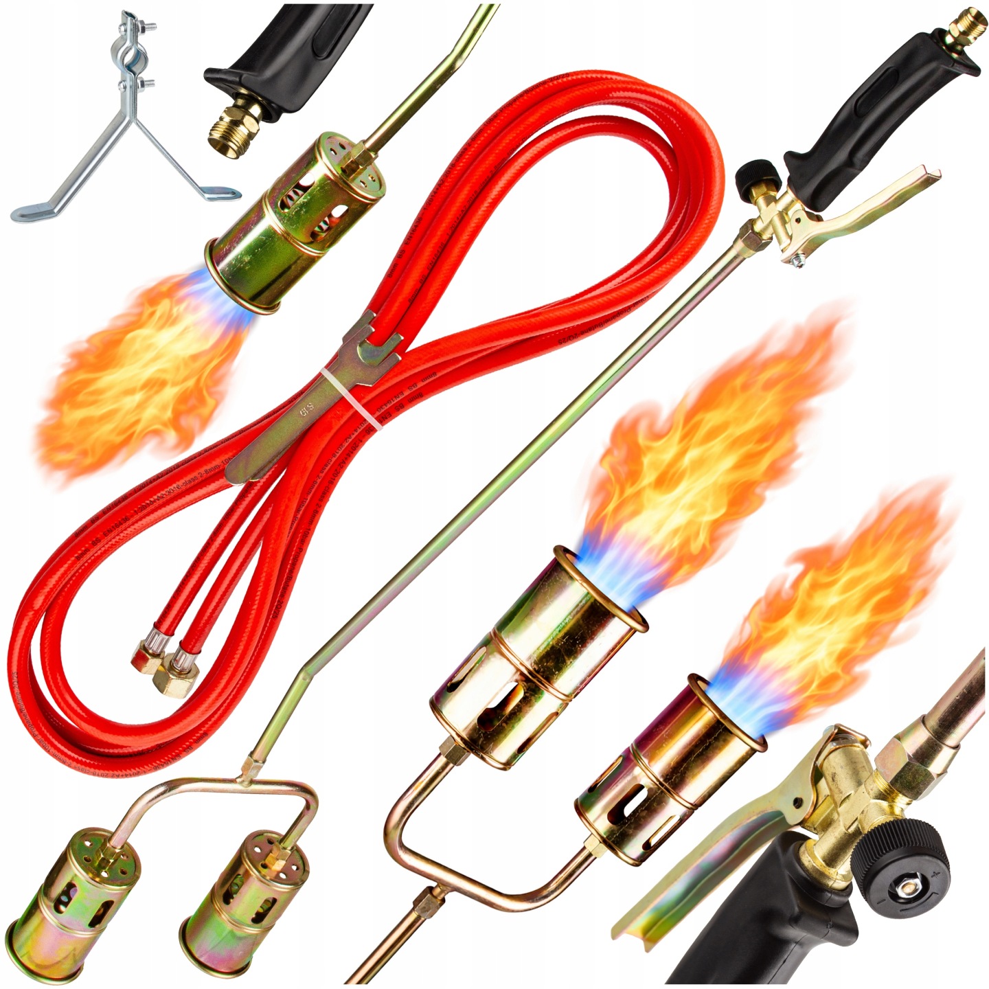 Palnik Gazowy 2w1 Opalania Papy Dekarski Długi Podwójna Dysza 2×60 5m Węża