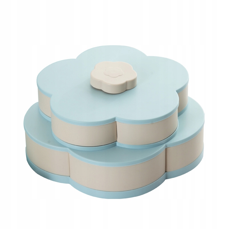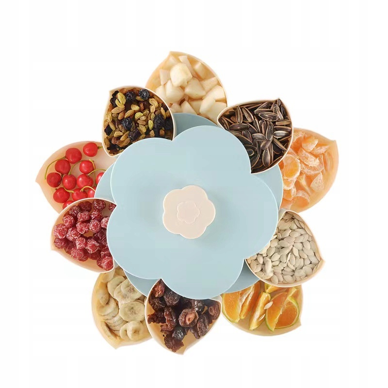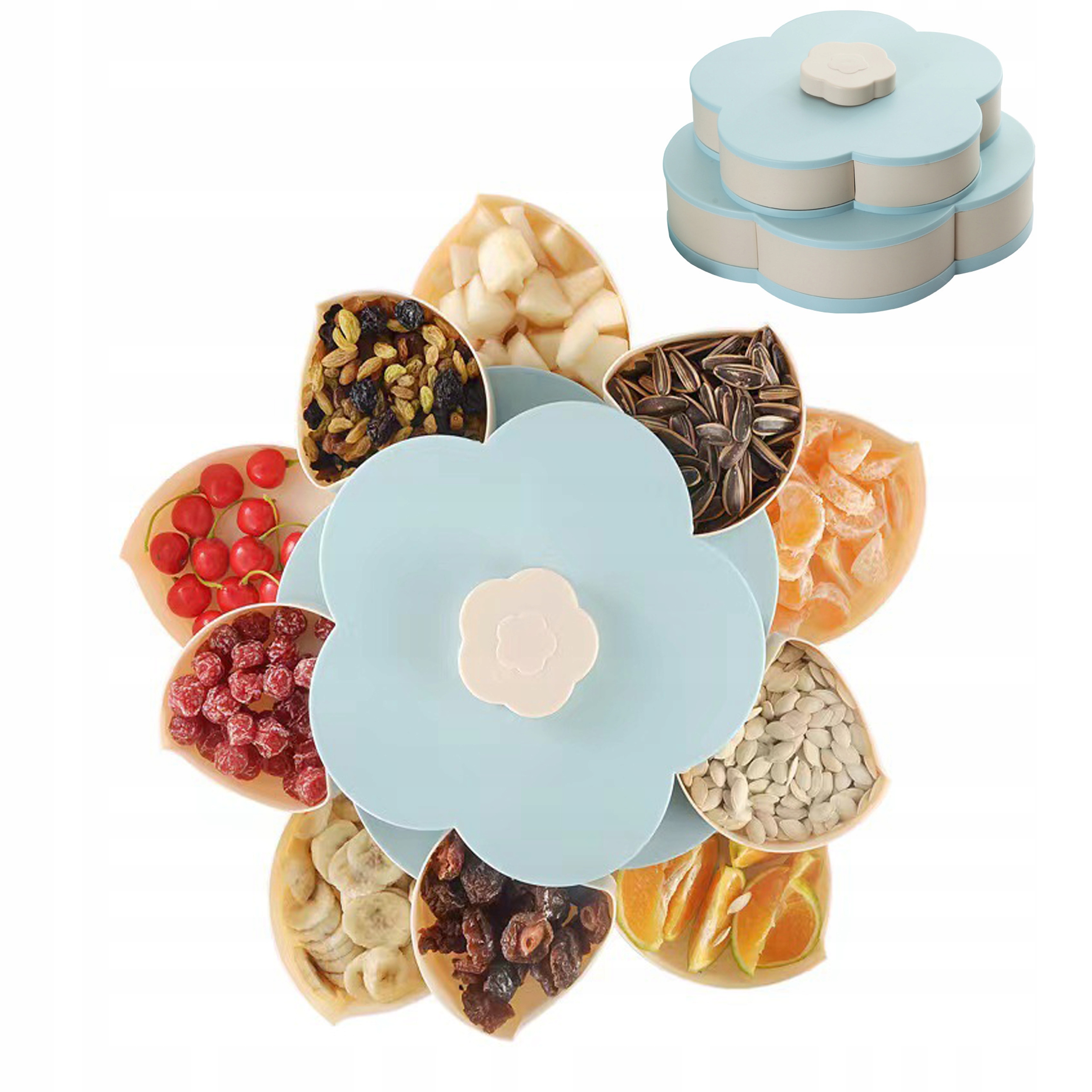 Obrotowy talerz przekąsek z kwiatami jest podzielony, dzięki czemu można w nim przechowywać różne przekąski.