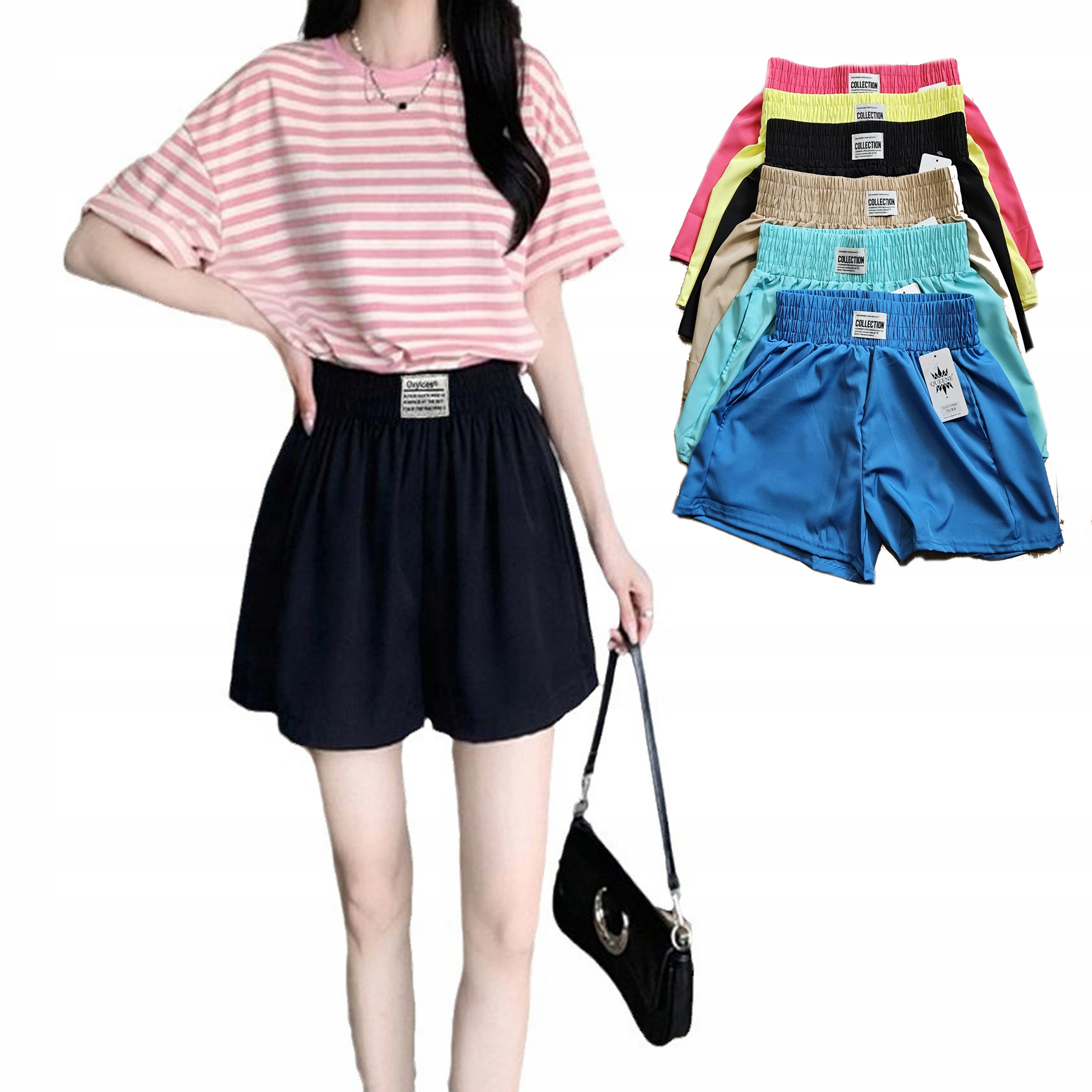 SPODENKI DAMSKIE ATRAKCYJNE SZORTY KOBIECE MATERIAŁOWE PRZEWIEWNE WYGODNE
