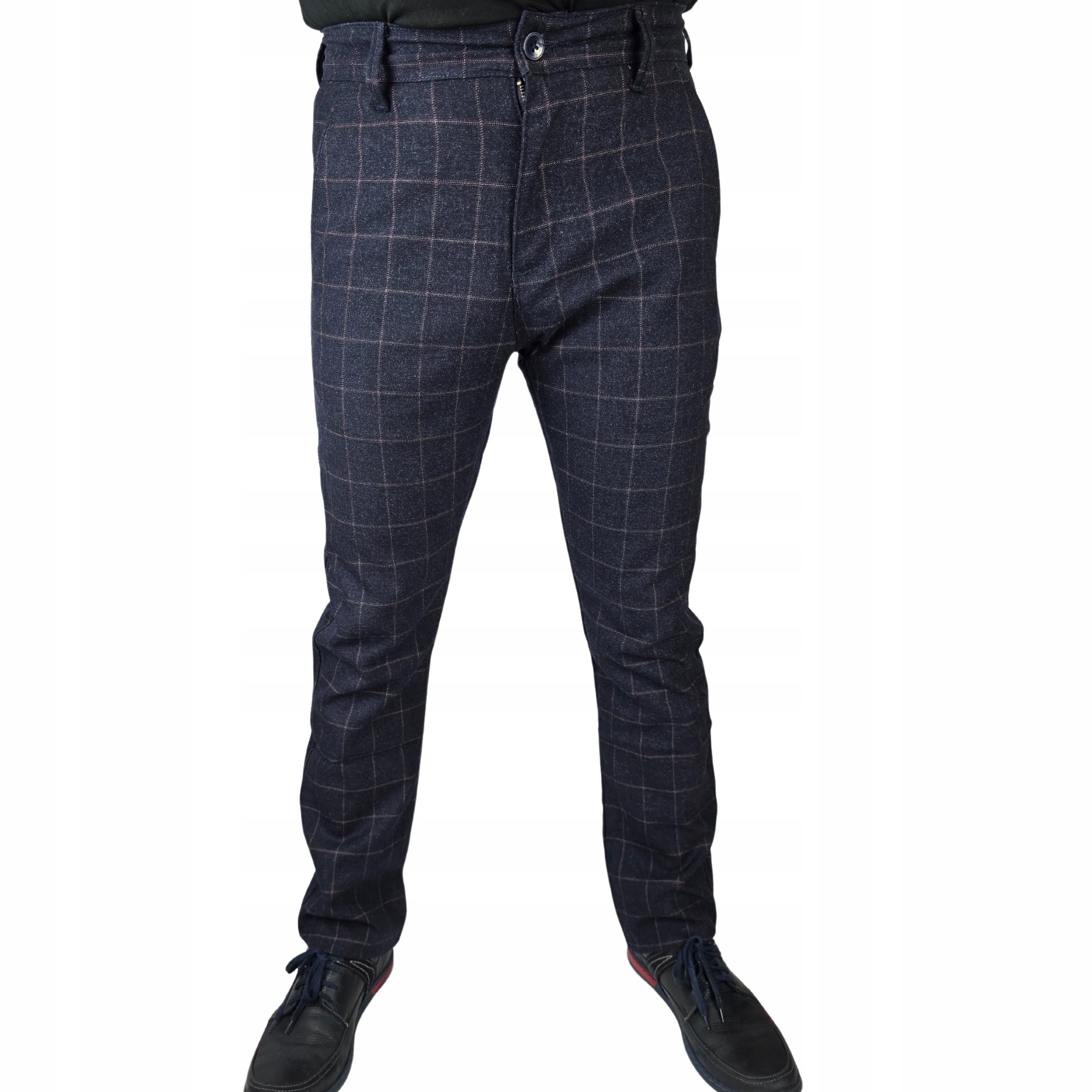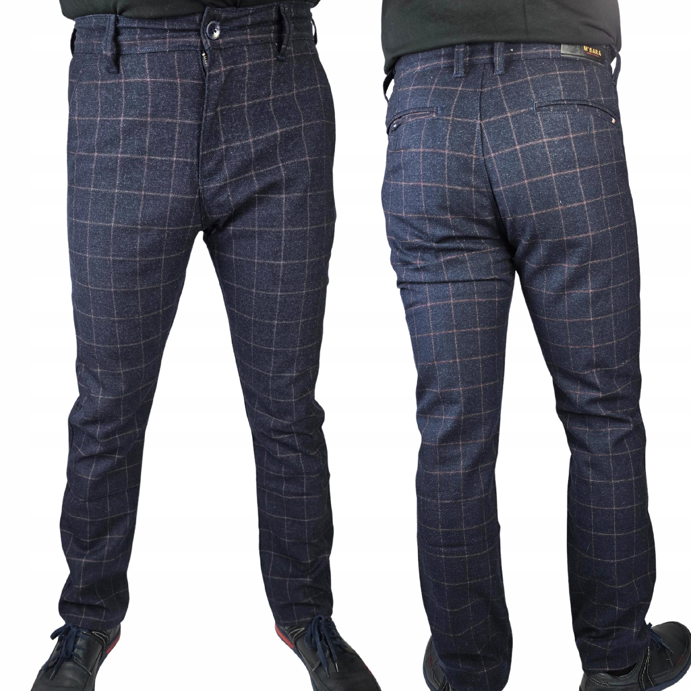 Spodnie Męskie Eleganckie Wizytowe W Kratę Materiałowe Elastyczne