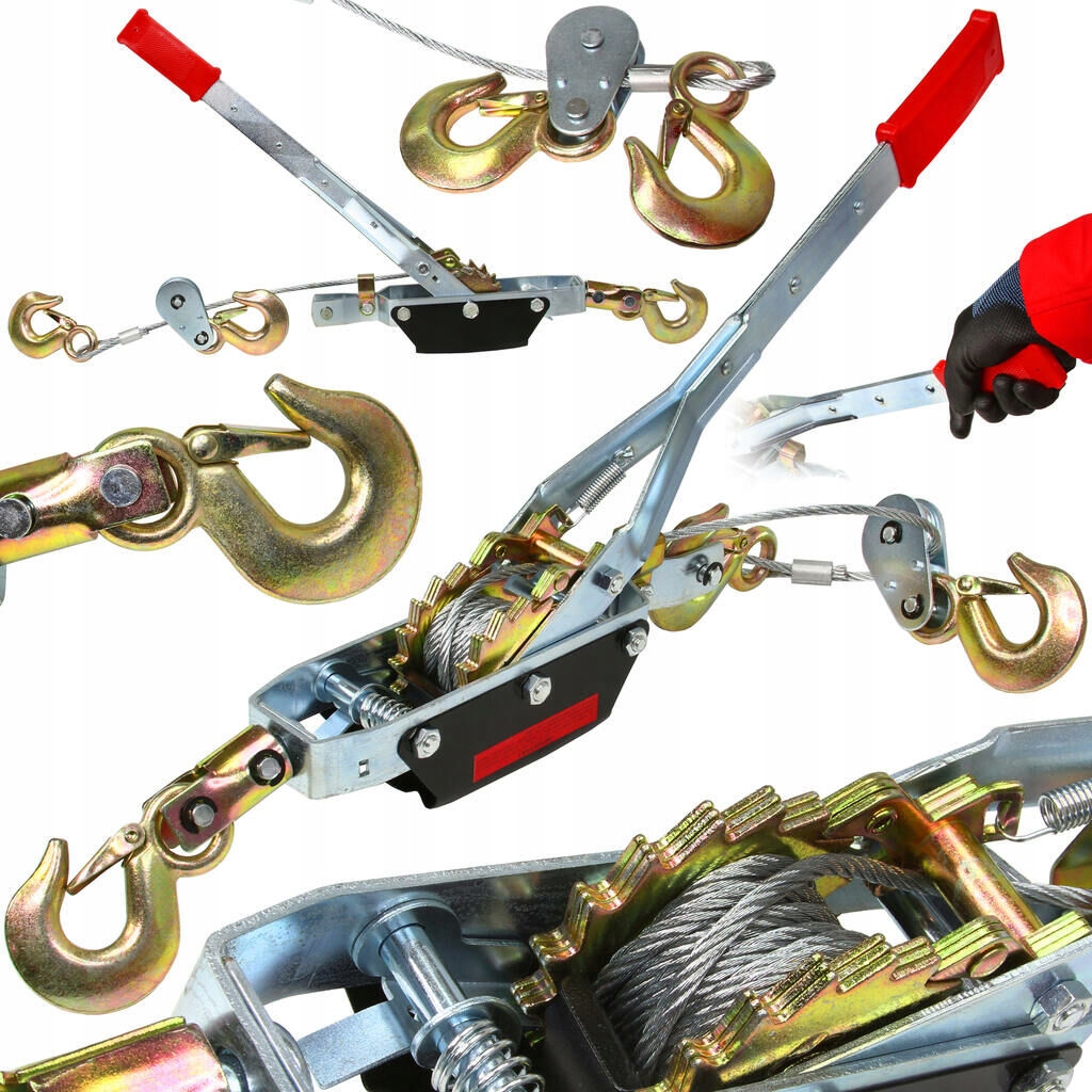 Wyciągarka Wciągarka Ręczna Linowa 4t 4000kg Zapadkowa 3 X Hak Lina Stalowa